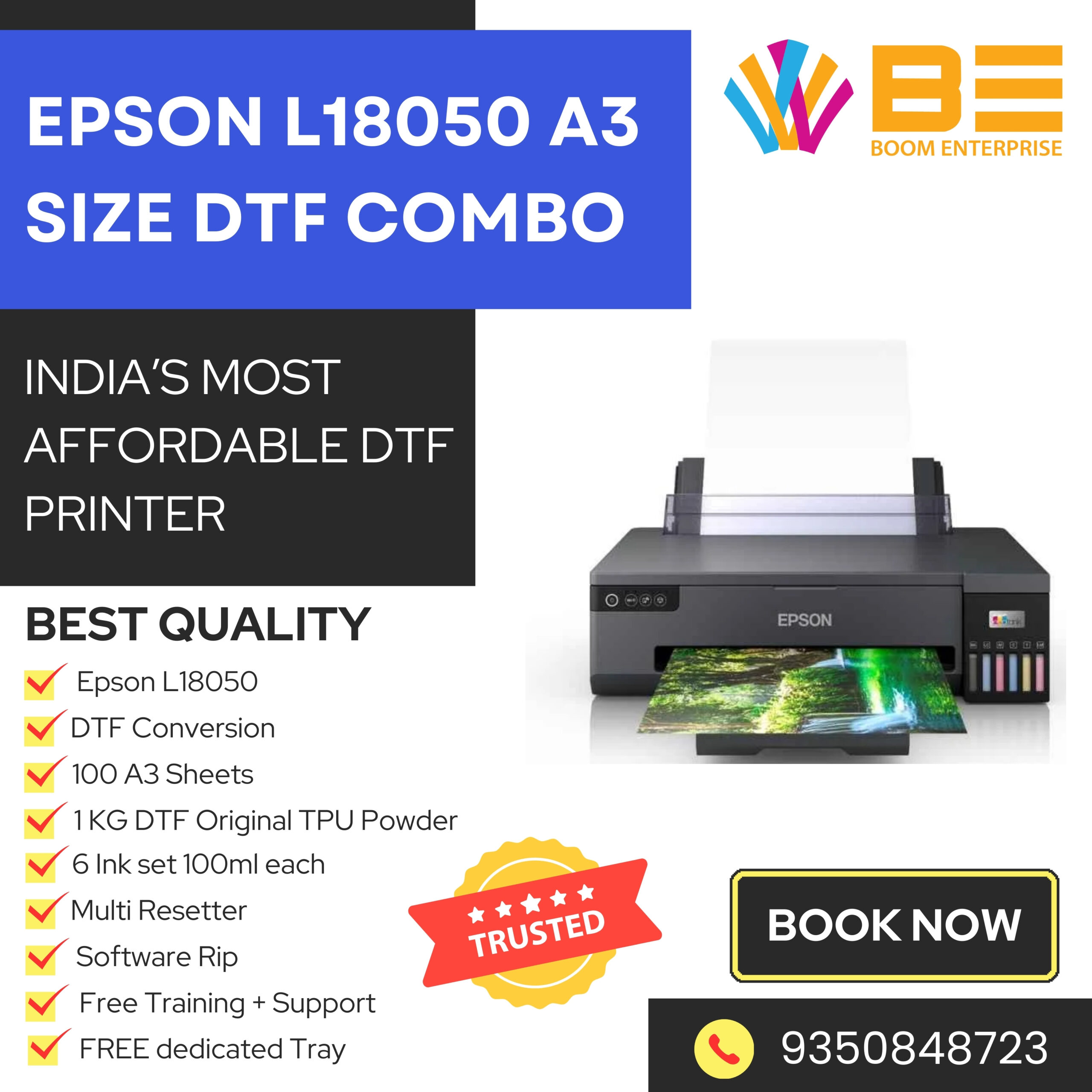 The Epson L18050 A3 DTF Combo Printer represents the next evolution in high-quality garment printing. Combining reliability, affordability, and professional-grade results, it empowers businesses to produce stunning, durable prints with ease. Whether you’re launching a new custom apparel line or expanding your existing business, this printer is your key to taking DTF printing to the next level.